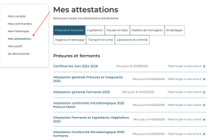 Vous pouvez les retrouver depuis votre compte personnel, dans la rubrique « Mes attestations » :