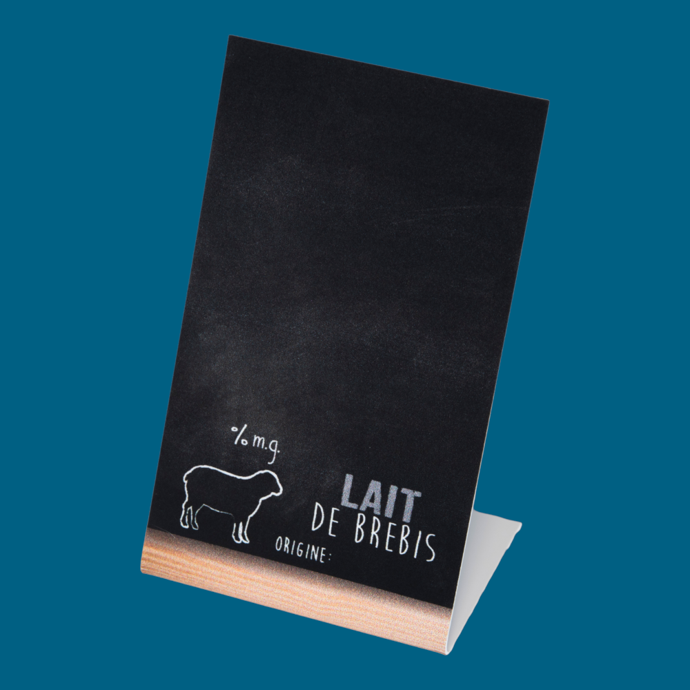 Home > Shop > TRANSPORT AND SALE > PRODUCTS LABELLING AND MARKING > ETIQUETTE CHEVALET ARDOISE LAIT DE BREBIS