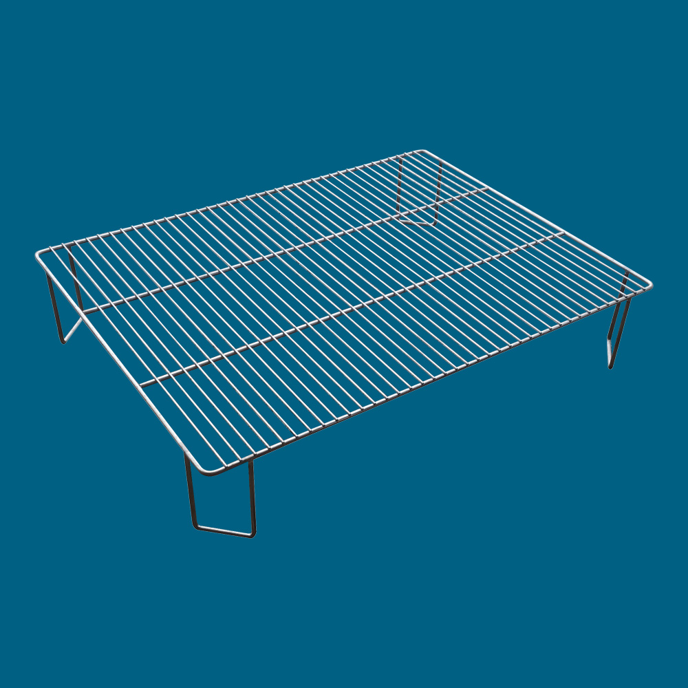 Grille inox de de fond pour bac de lavage pour surélever le petit matériel à laver. Dimensions : 800 mm x 600 mm. Hauteur pieds 150 mm.