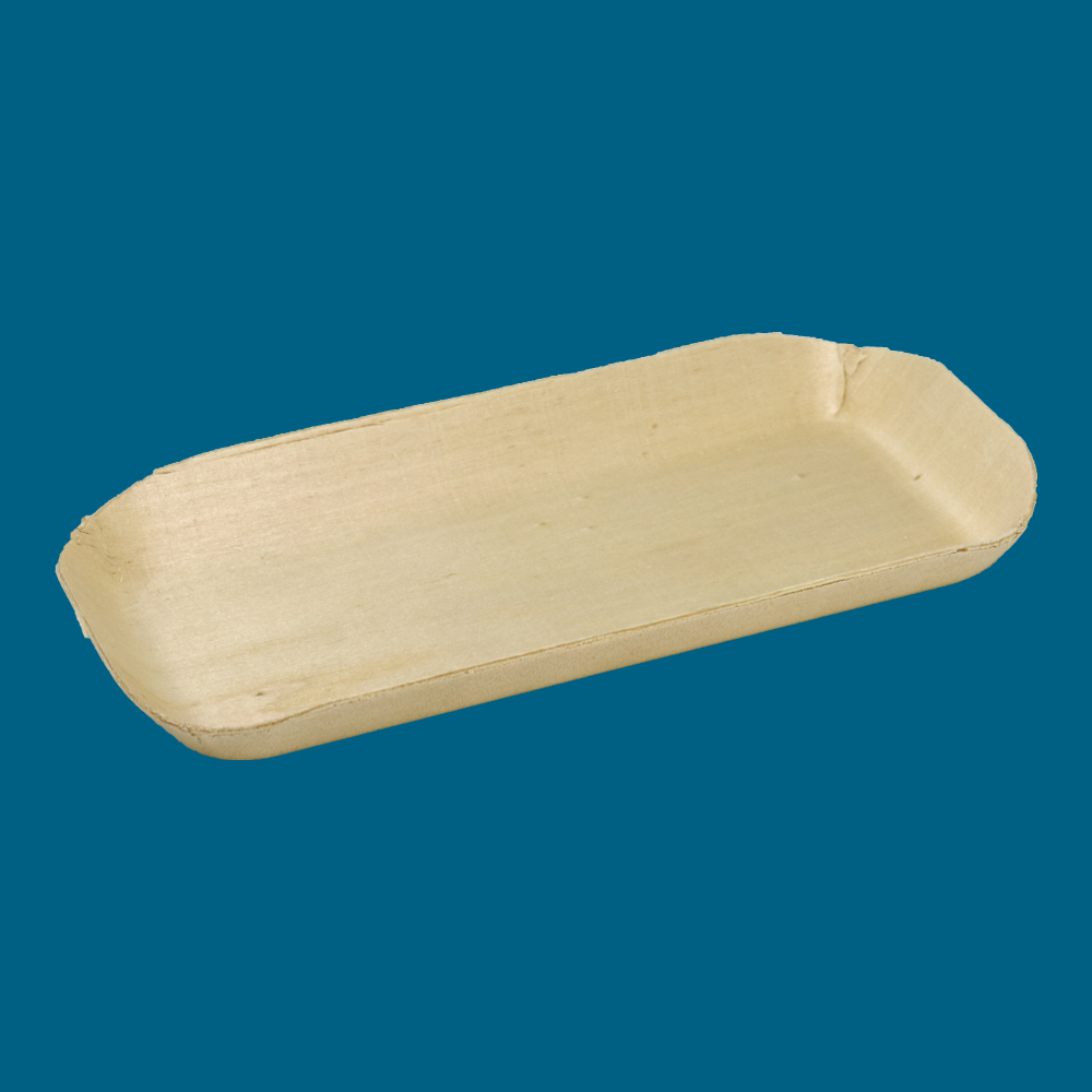 Barquette thermoformée en peuplier contrecollé. Dimensions : 150 mm x 60 mm x 15 mm. Carton de 1500. Vendu par sachet de 150. Prix par 10.