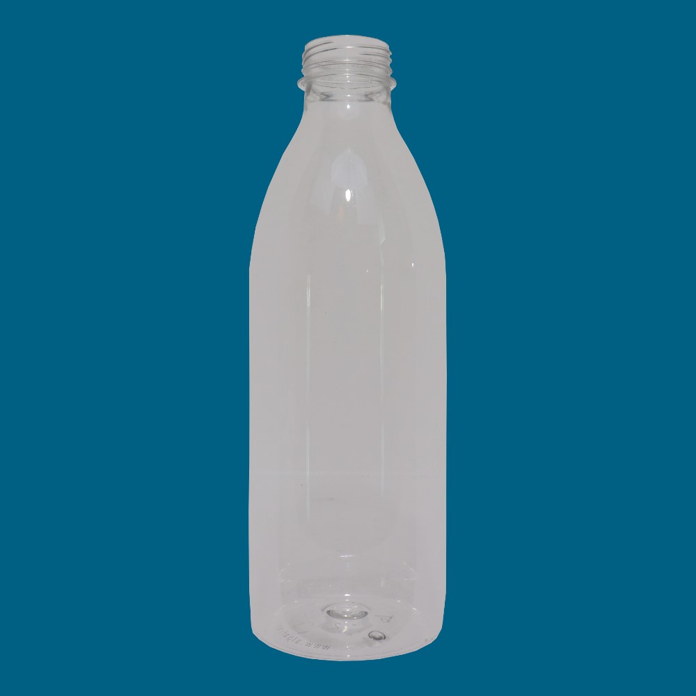 Bouteille à lait 1 litre en PET transparent. Carton de 176 bouteilles. Palette de 6 cartons soit 1056 bouteilles. Prix à l'unité. Bouchons de différentes couleurs vendus séparément.