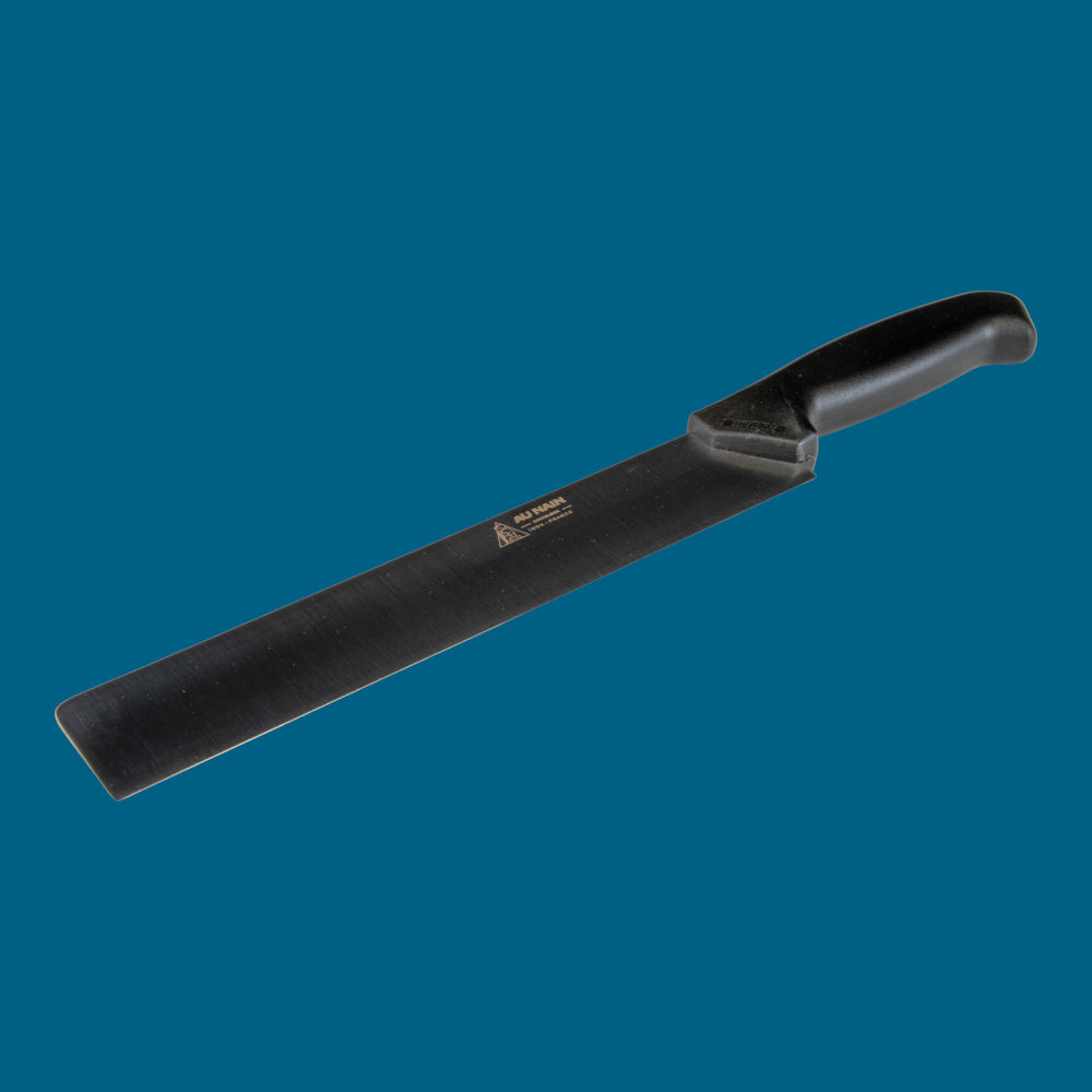 Couteau à fromage à une poignée, pour découpe de tout fromages. Poignée noire en polypropylène. Lame inoxydable. Longueur de lame 25 cm. Longueur totale 38 cm.