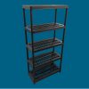 Étagère légère en résine agréée contact alimentaire. Montage rapide par emboitement. Comprend 5 tablettes alvéolées pour égouttage ou ventilation. Hauteur entre étages 370 mm. Capacité 60 Kg par tablette maximum. Dimensions : 1840 mm x 920 mm x 450 mm.
