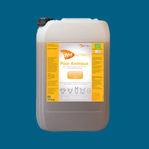Ferment de céréales pour la bioprotection dans les élevages, salles de traite, fromageries. Apport dans l'alimentation des animaux, pulvérisation sur les litières, en salle de traite, en fromagerie, en cave d'affinage, apport en saumure. Certifié par FR-BIO-10. Dosage 1 à 5 %. Bidon de 25Kg. Prix au Kg.