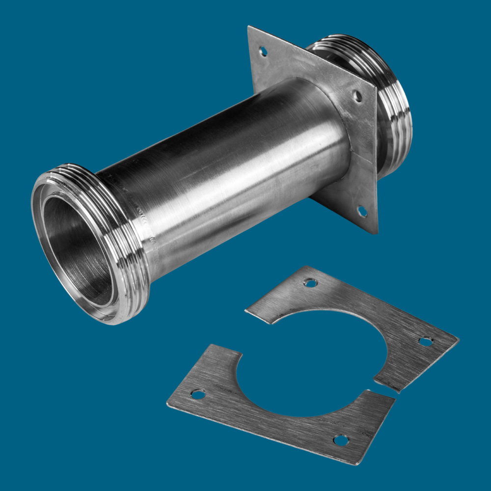Home > Nos produits en ligne > MATERIEL DE FROMAGERIE > POMPES, RACCORDS ET TUYAUX > PASSE PAROI SMS 51 MALE / MALE AVEC 2 TOLES A VISSER