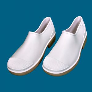 Paire de sabots de sécurité en cuir, ouverts à l'arrière. Dessus en cuir lisse. Semelle extérieure en polyuréthane antidérapante. Semelle intérieure en tissu. bride pivotante. Blanc. Pointure 39.