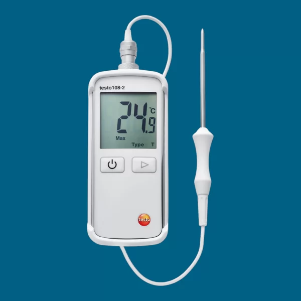 Thermomètre électronique portatif de précision avec sonde étanche déportée en acier inoxydable. Exactitude de mesure +/- 0,25°C. Mesure d’ambiance, dans les liquides et semi-solides.